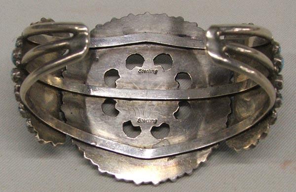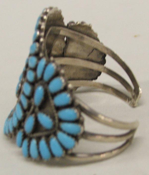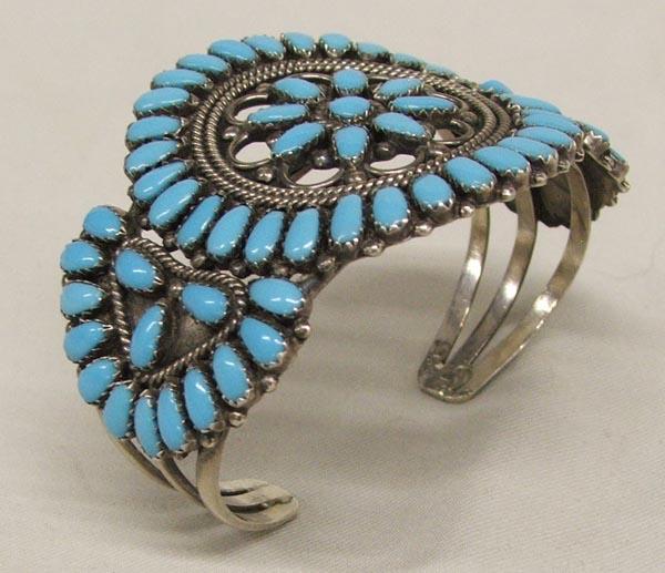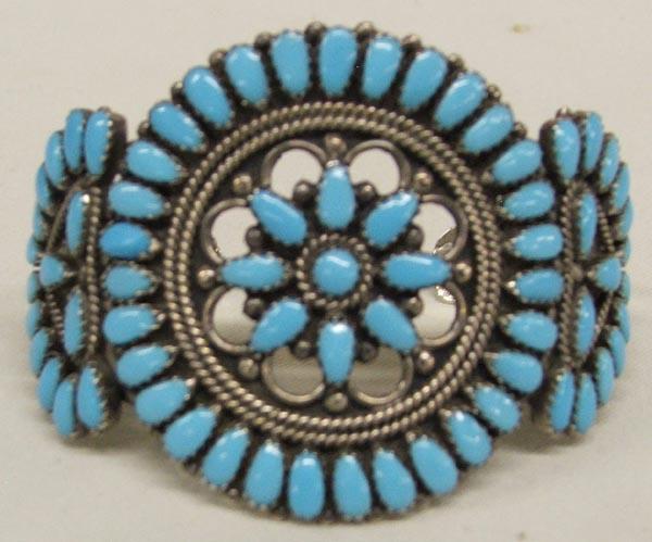 Navajo Silver Cluster Bracelet set with 70 Turquoise Stones, measures approx. 2'' x 6.5'', inside measures 6.5''. SHI $15.