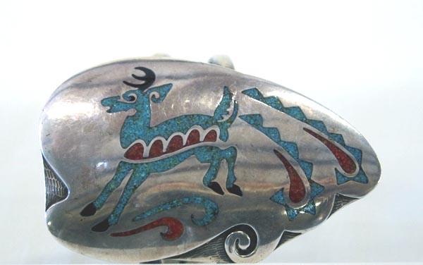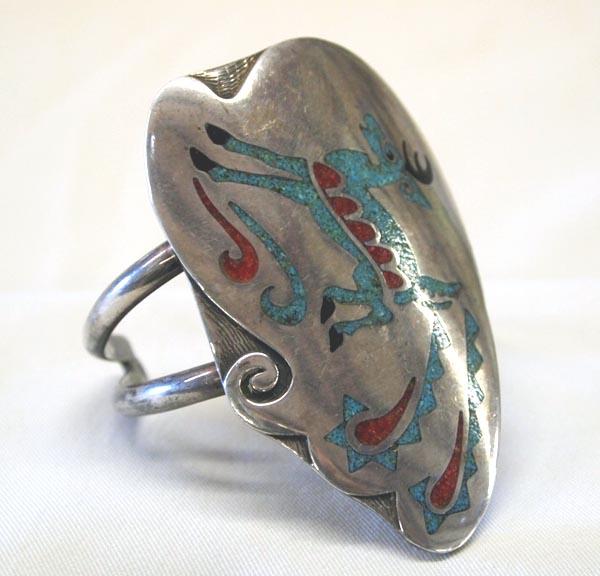 Navajo Silver Turquoise Coral Inlay Bracelet, measures approx. 6 1/2". 2.54 ounces silver. SHI $15.