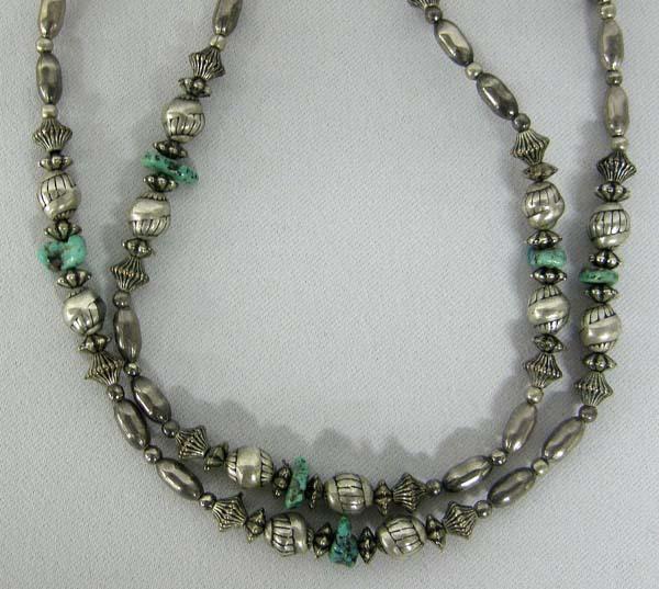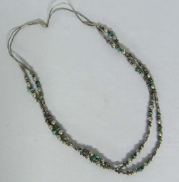 Navajo Silver Turquoise Double Strand Necklace. Measures approx. 28''. SHI $15.