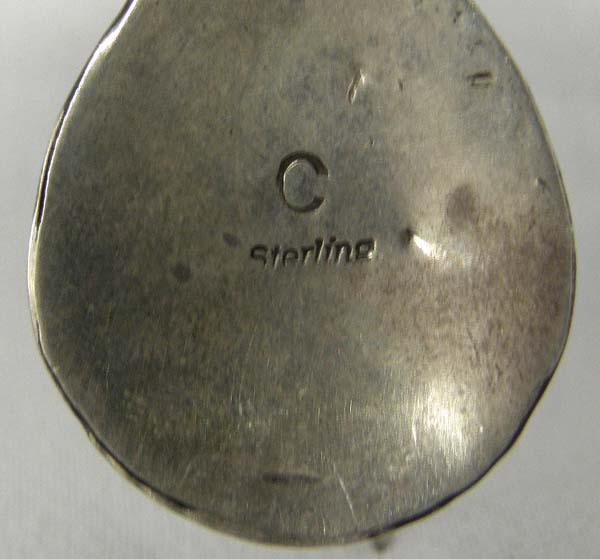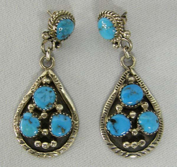 Navajo Silver Turquoise Earrings, older pawn, Hallmarked C and Sterling, measures approx. 2.25'' length and .75'' width. SHI 15.