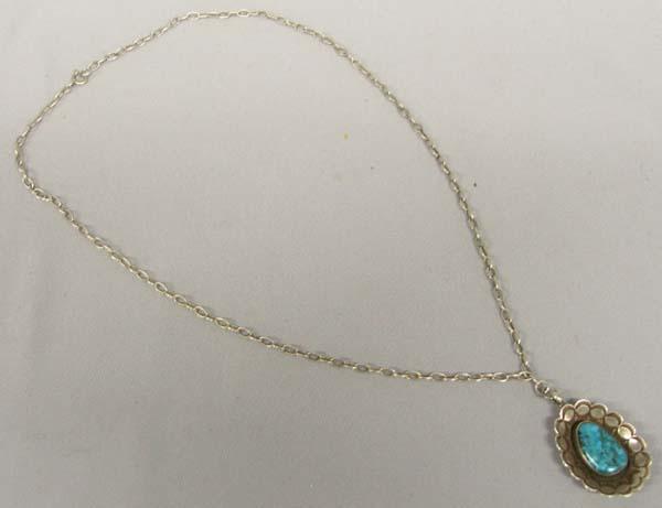 Navajo Silver Turquoise Necklace W/Hallmark on Back of Pendant. Chain measures 24''; Pendant is 1.75''. SHI $15.