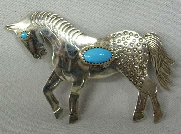Navajo Silver Turquoise Pin Hallmarked FY and Sterling, measures approx. 2.5'' x 1.5''. SHI $15.