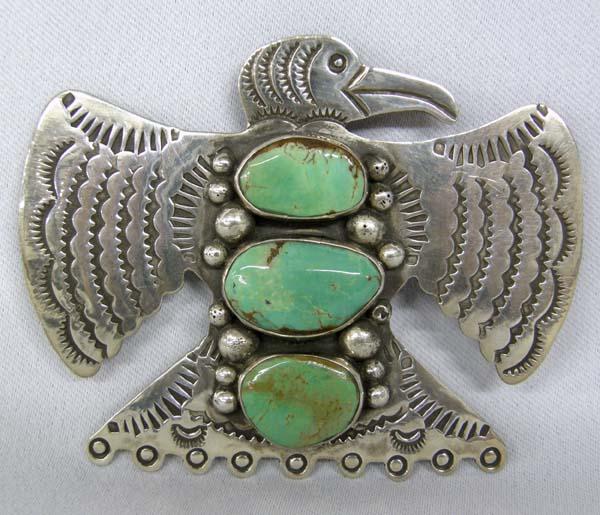 Navajo Silver Turquoise Thunderbird Pin/Pendant by Albert Cleveland. Measures approx. w''Wx2.5''H. SHI $15.