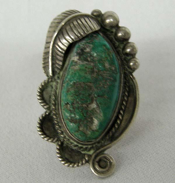 Navajo Silver Turquoise Ring, size 6.5, measures approx. 1.5'' x 1''. SHI $15.