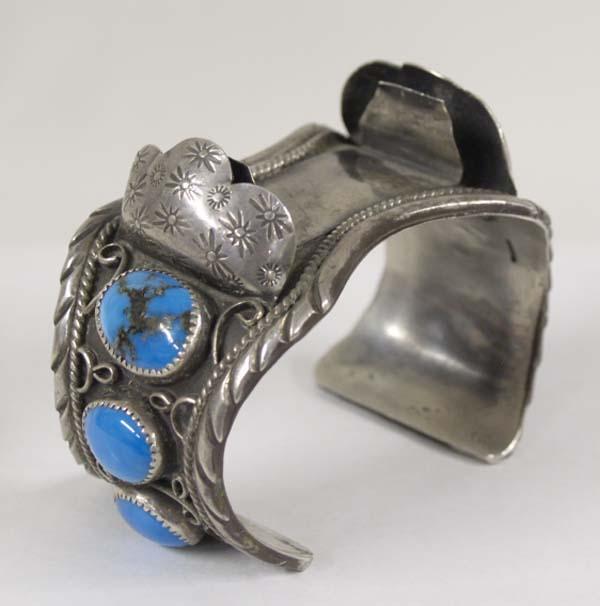 Navajo Silver Turquoise Watch Bracelet, measures approx. 7'' x 1 3/4''. SHI $20.