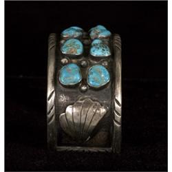 Navajo Silver and Turquoise Row Bracelet with Ten Stones 6 1/4" L.