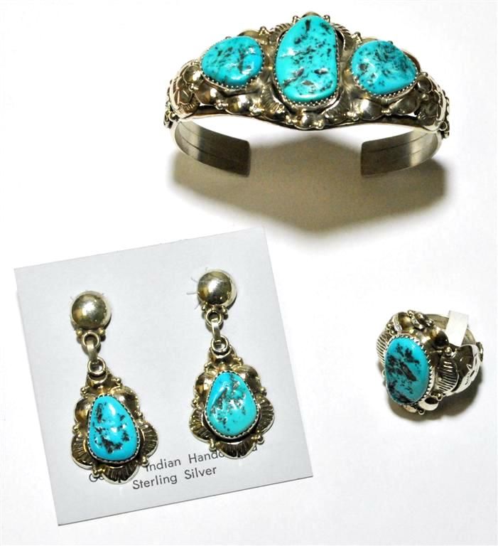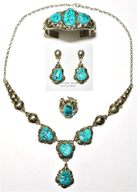 Navajo Sleeping Beauty Turquoise 4-Piece Set - Clem Nalwood
