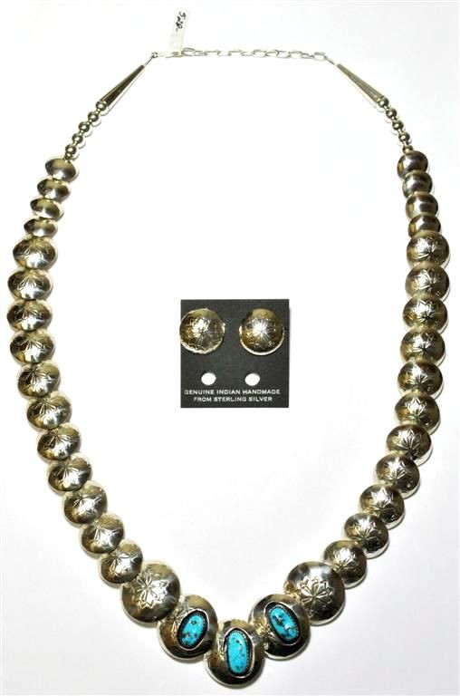 Navajo Sleeping Beauty Turquoise Sterling Silver Necklace & Earrings Set