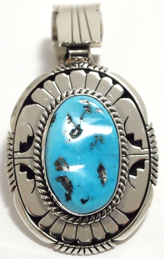 Navajo Sleeping Beauty Turquoise Sterling Silver Pendant - Eugene Belone