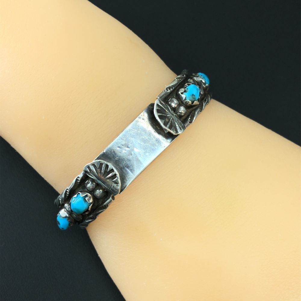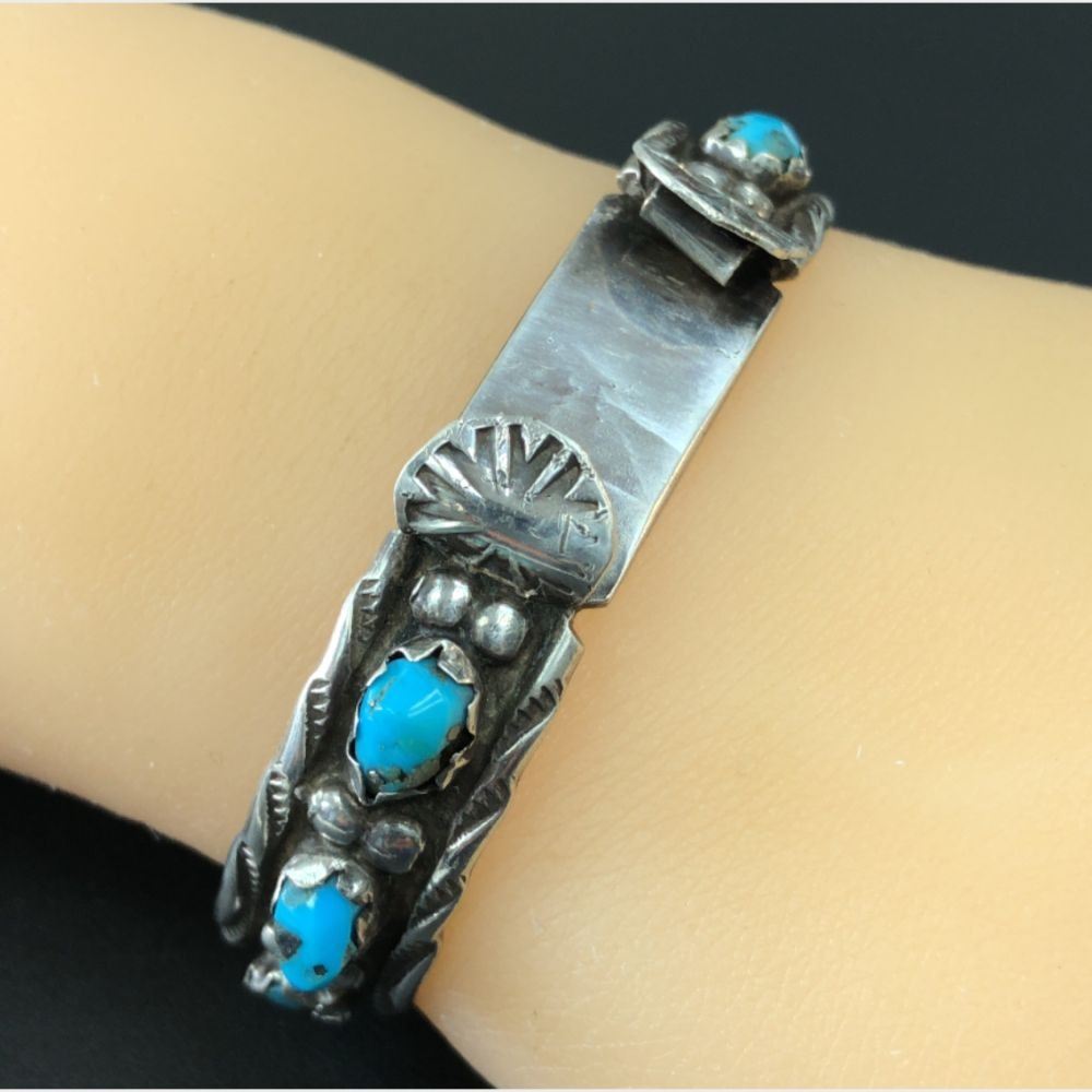 Circa 1950 Navajo ( 6 ) AAA Sleeping Beauty Turquoise stones Watch Band size 6 1/2 " adjustable W 3/8 "