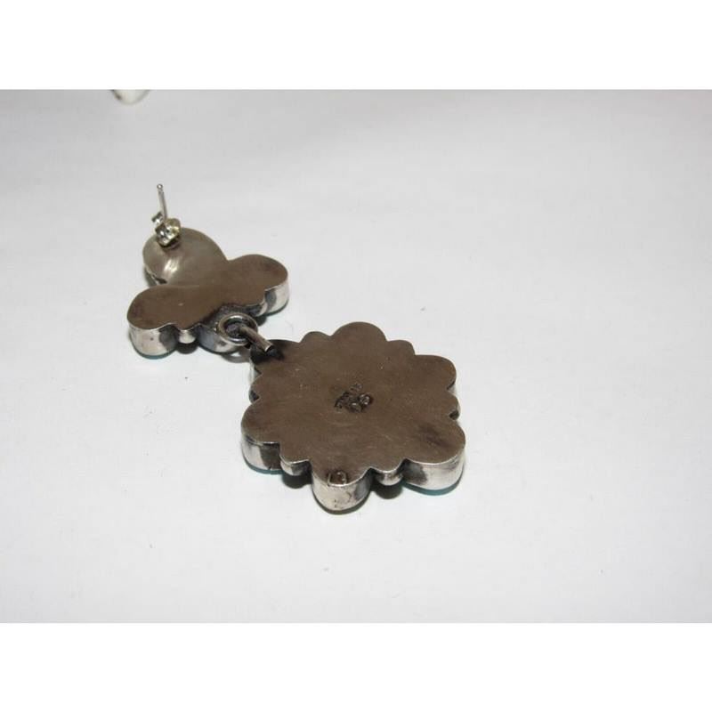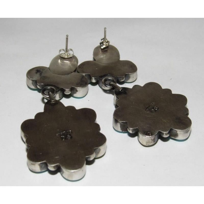Navajo Sonoran Gold Turquoise Cluster Dangle Statement Earrings Sterling Silver