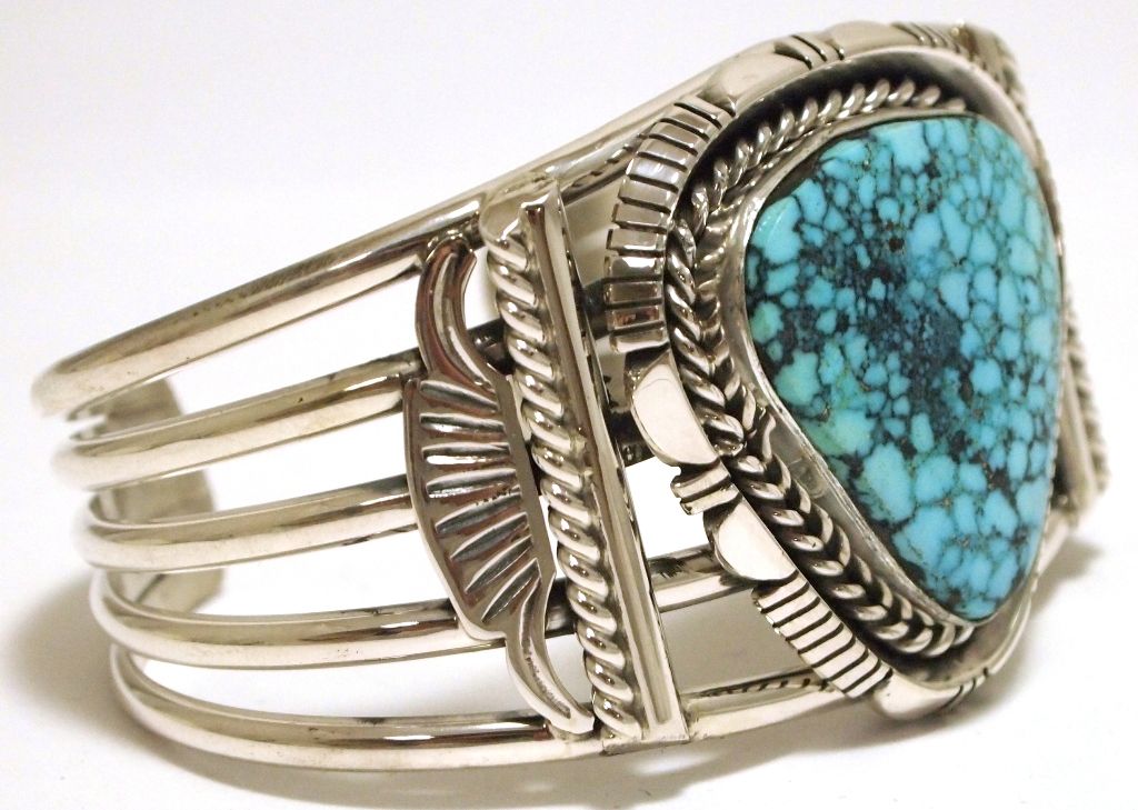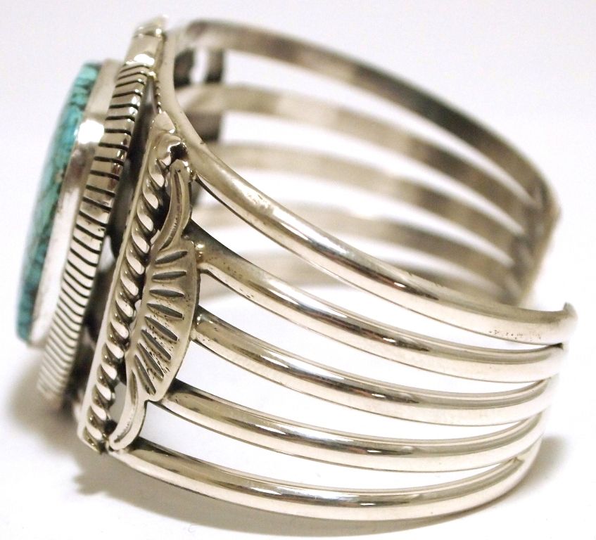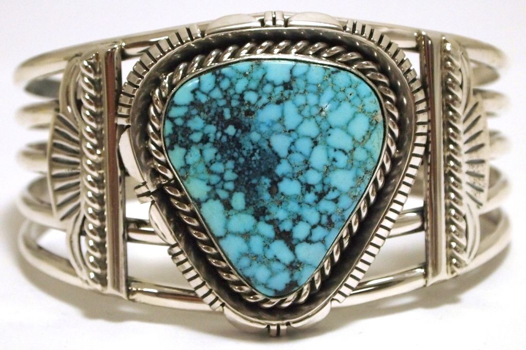 Navajo Spider Web Kingman Turquoise Sterling Silver Cuff Bracelet - Eugene Belone