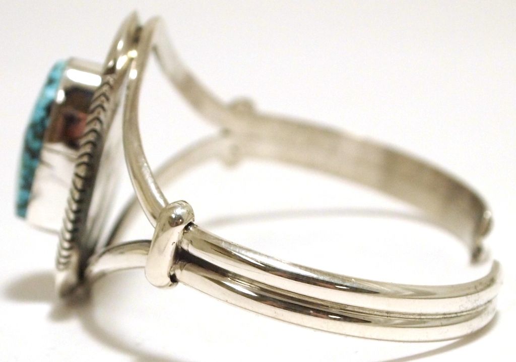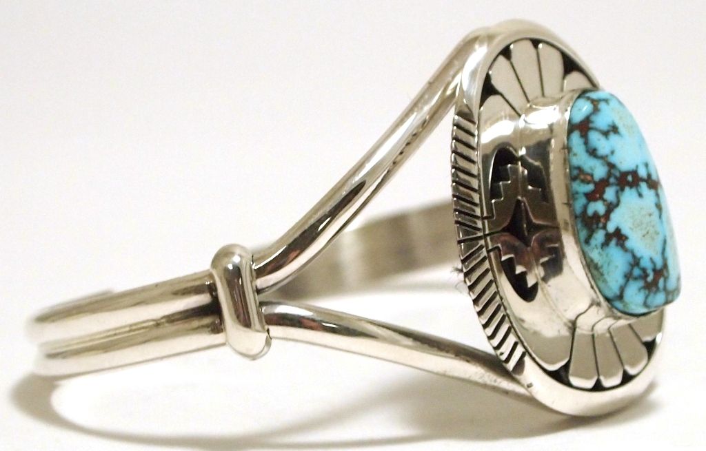 Navajo Spider Web Kingman Turquoise Sterling Silver Cuff Bracelet - Eugene Belone