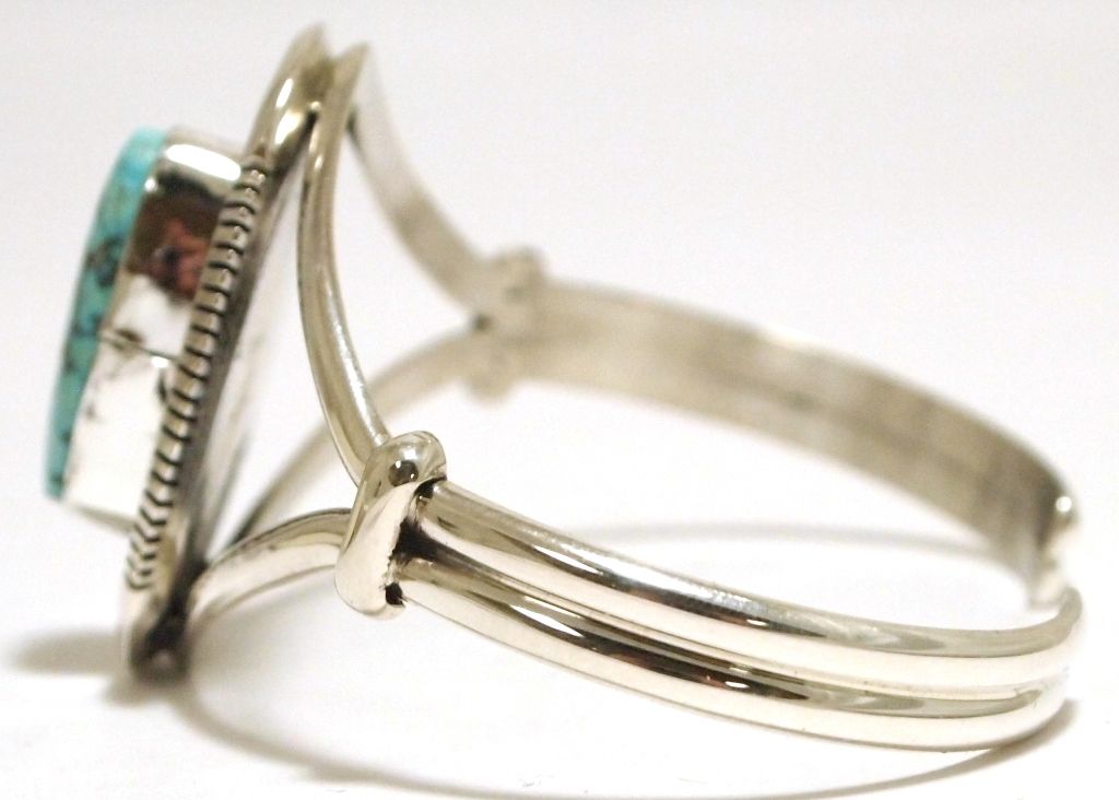 Navajo Spider Web Kingman Turquoise Sterling Silver Cuff Bracelet - Eugene Belone