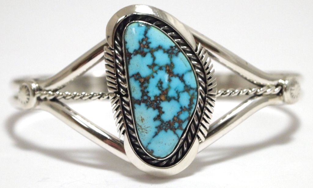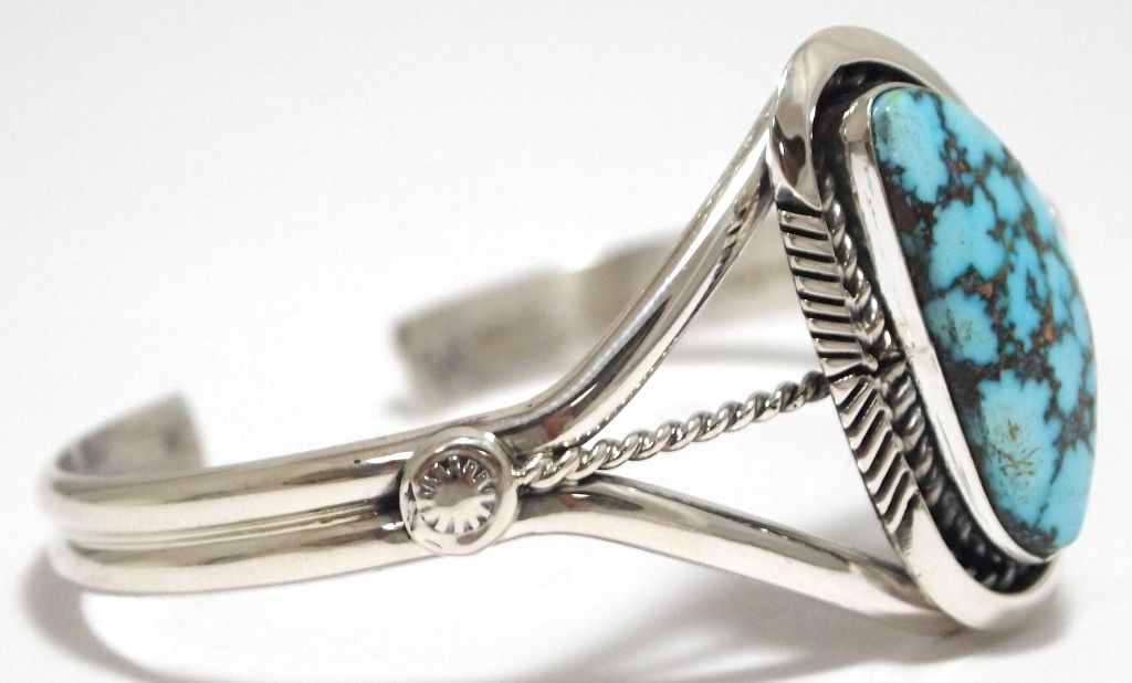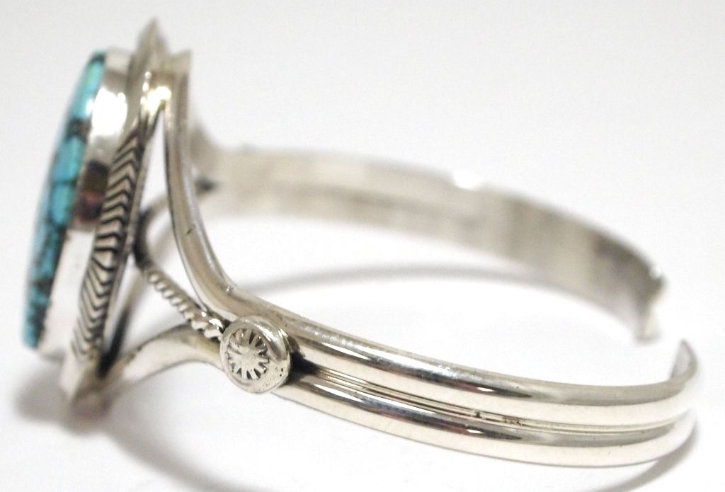 Navajo Spider Web Kingman Turquoise Sterling Silver Cuff Bracelet - Eugene Belone