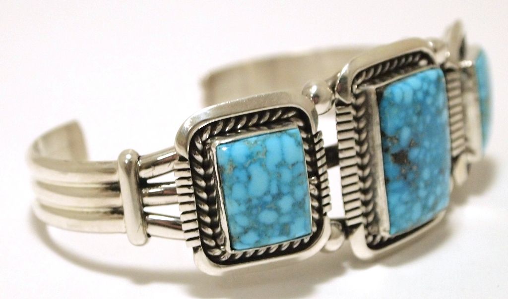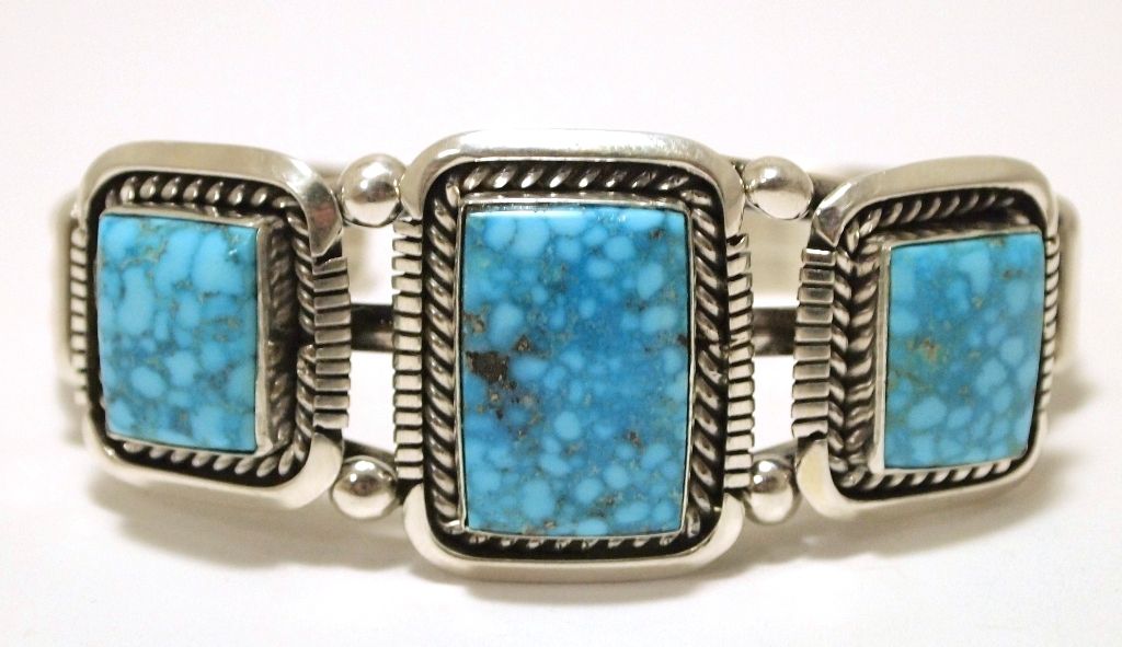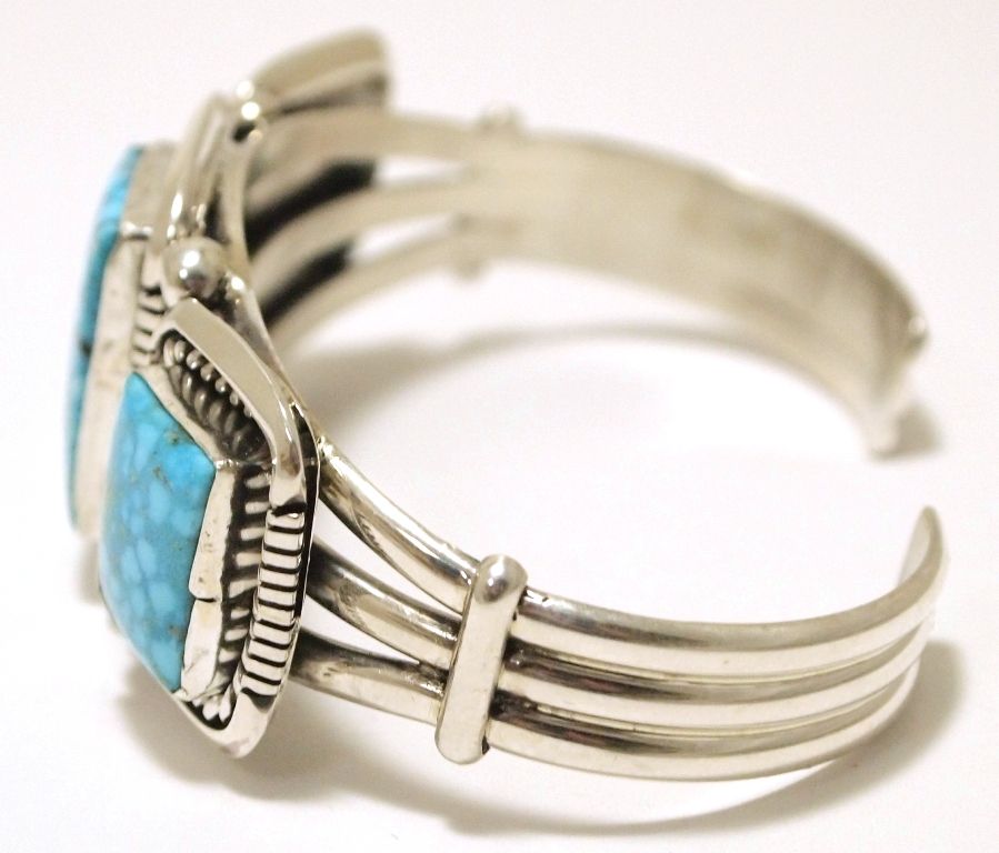 Navajo Spider Web Kingman Turquoise Sterling Silver Cuff Bracelet - Eugene Belone