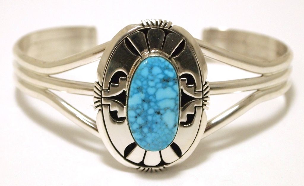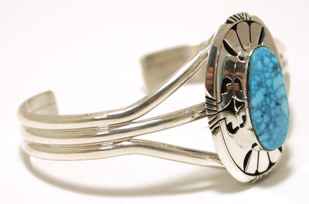 Navajo Spider Web Kingman Turquoise Sterling Silver Cuff Bracelet - Eugene Belone