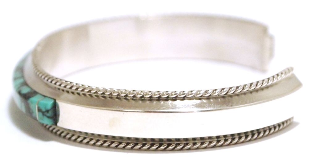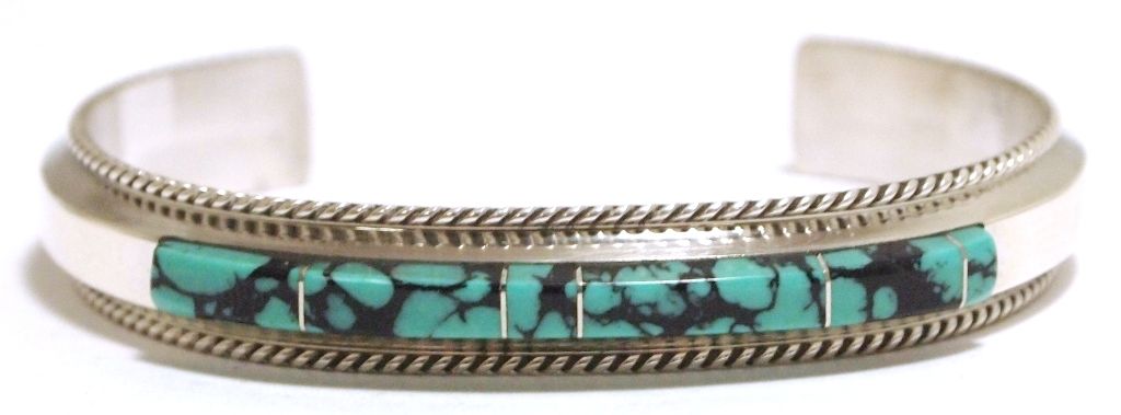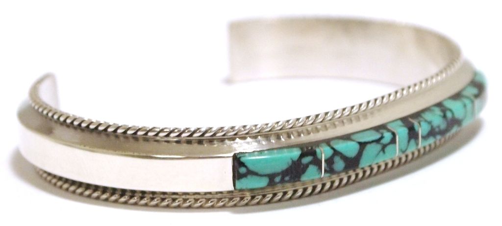 Navajo Spider Web Kingman Turquoise Sterling Silver Cuff Bracelet - Fran Yazzie