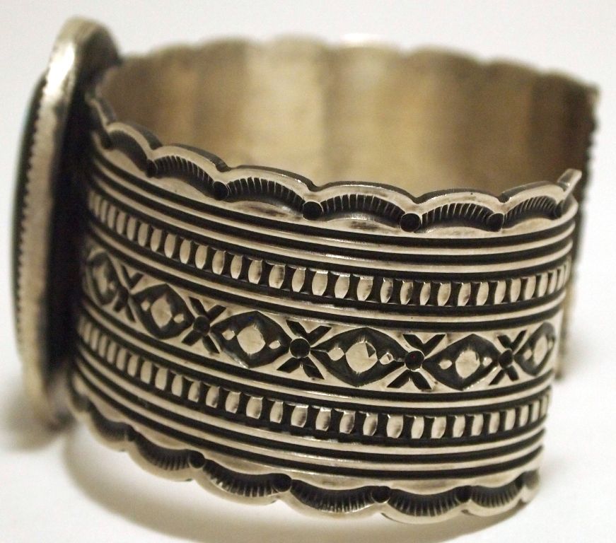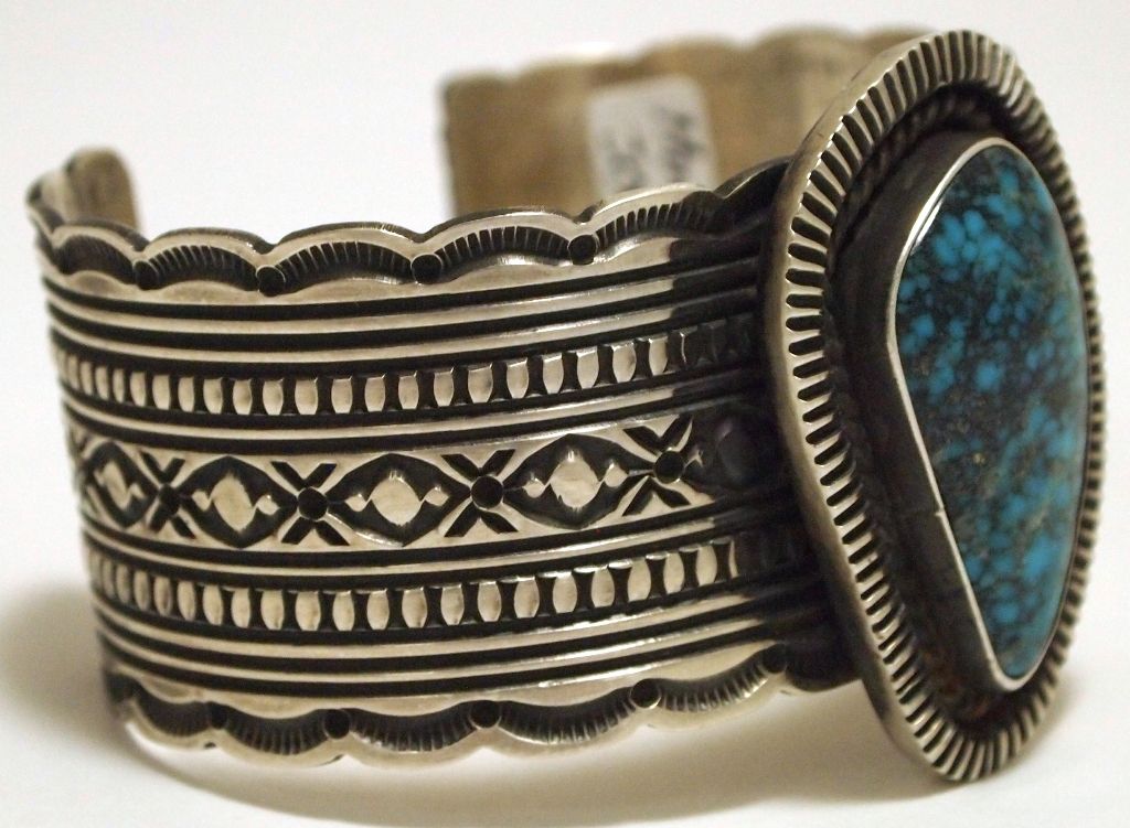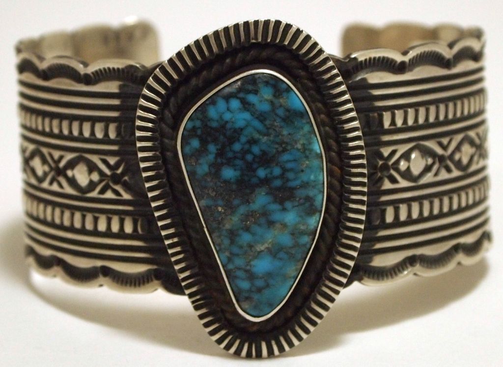 Navajo Spider Web Kingman Turquoise Sterling Silver Cuff Bracelet - Harold Joe
