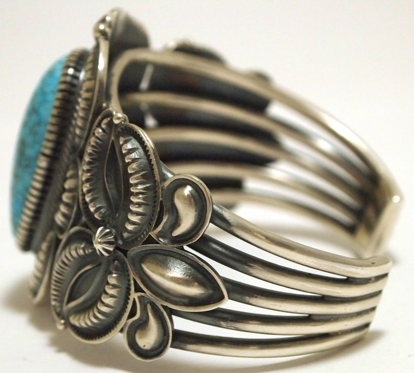 Navajo Spider Web Kingman Turquoise Sterling Silver Cuff Bracelet - Kirk Smith