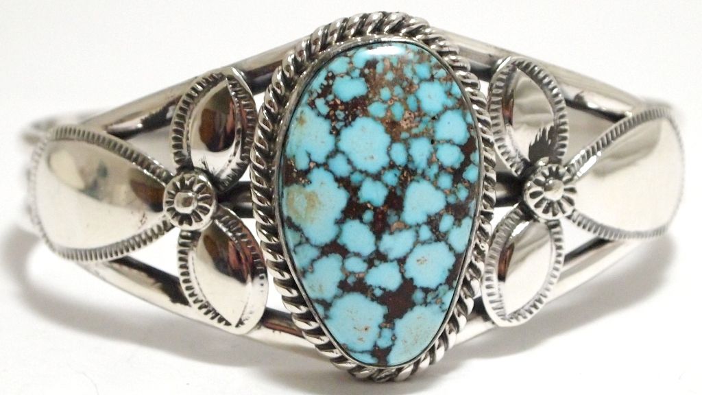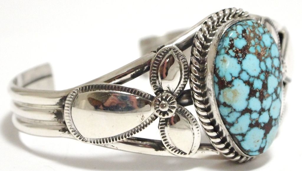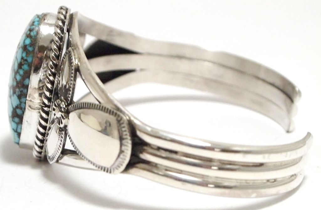 Navajo Spider Web Kingman Turquoise Sterling Silver Cuff Bracelet - Mary Ann Spencer