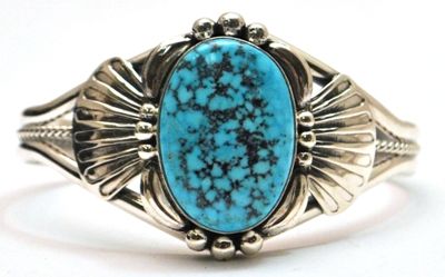 Navajo Spider Web Kingman Turquoise Sterling Silver Cuff Bracelet - Mary Ann Spencer
