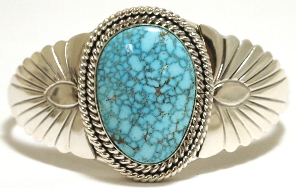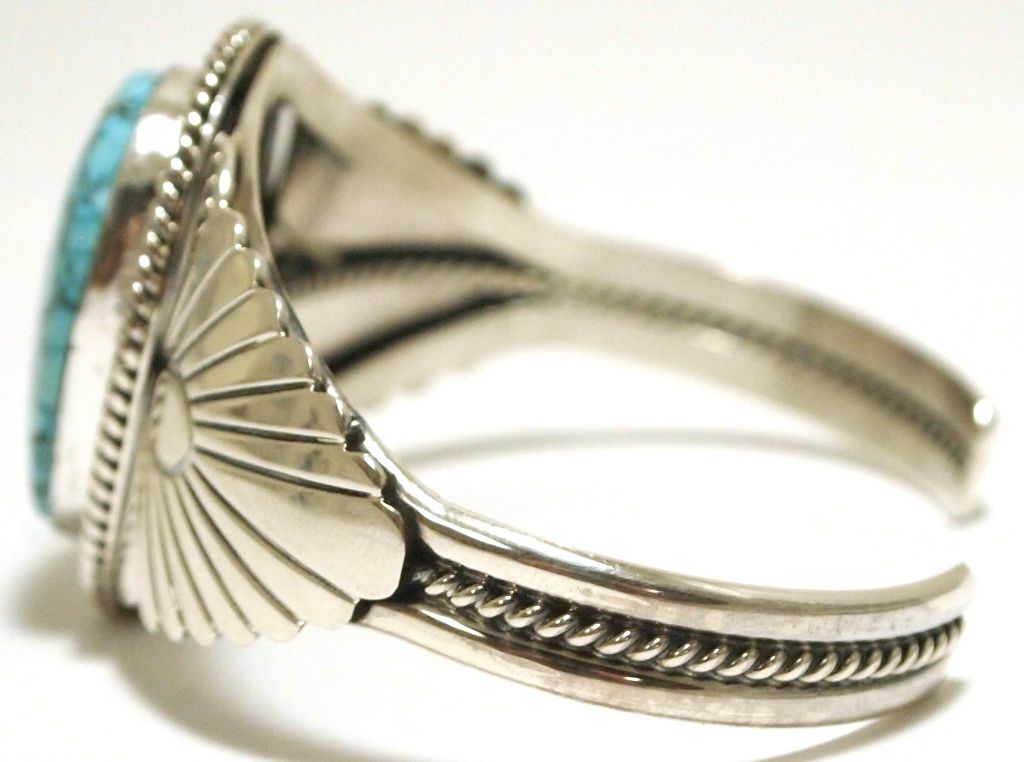 Navajo Spider Web Kingman Turquoise Sterling Silver Cuff Bracelet - Mary Ann Spencer