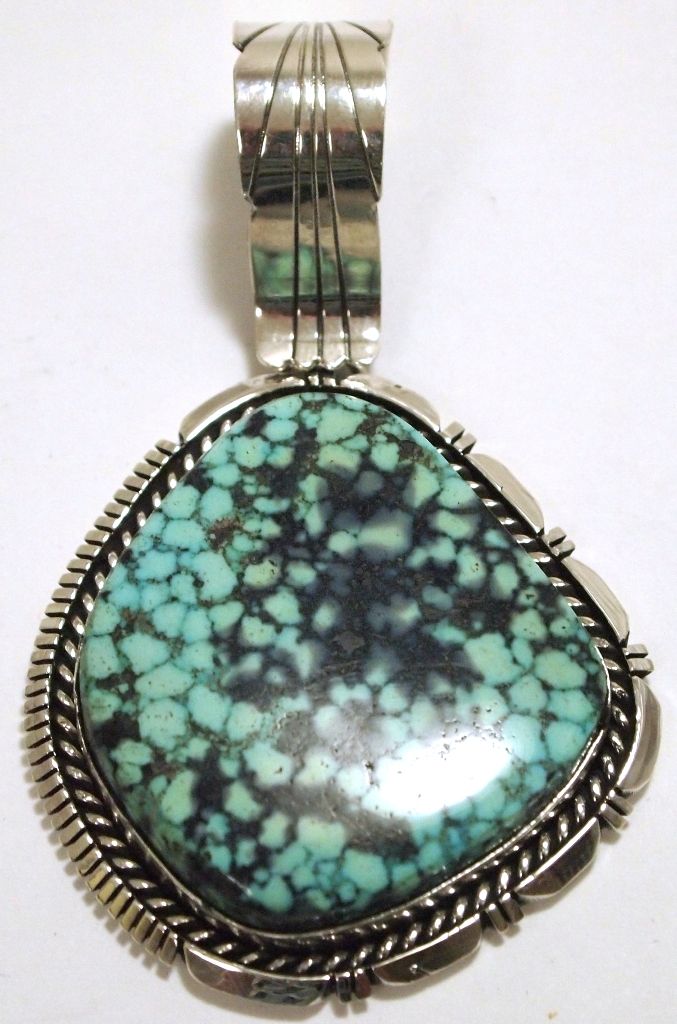 Navajo Spider Web Kingman Turquoise Sterling Silver Pendant - Eugene Belone