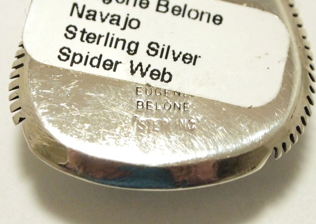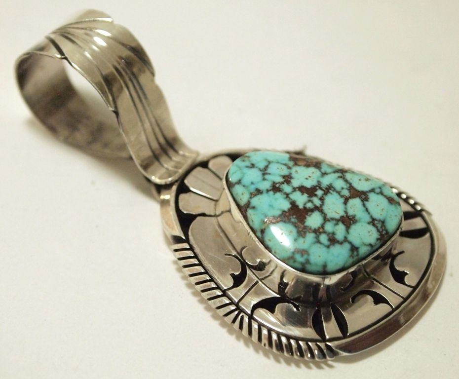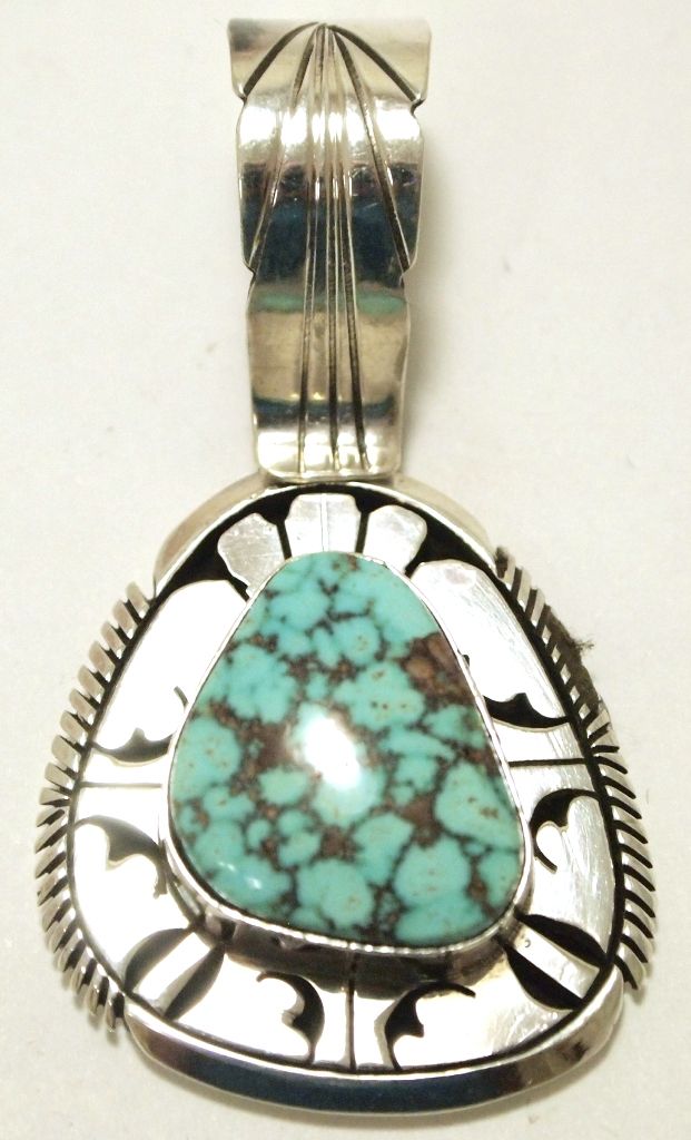 Navajo Spider Web Kingman Turquoise Sterling Silver Pendant - Eugene Belone