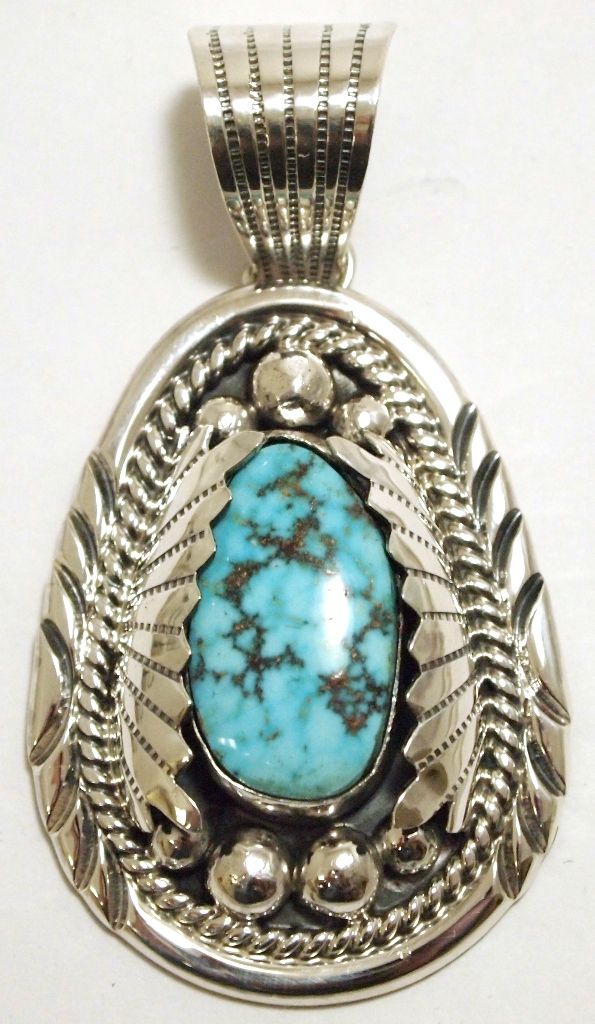 Navajo Spider Web Kingman Turquoise Sterling Silver Pendant - Mary Ann Spencer