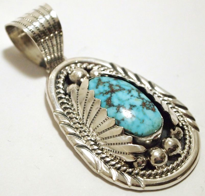 Navajo Spider Web Kingman Turquoise Sterling Silver Pendant - Mary Ann Spencer