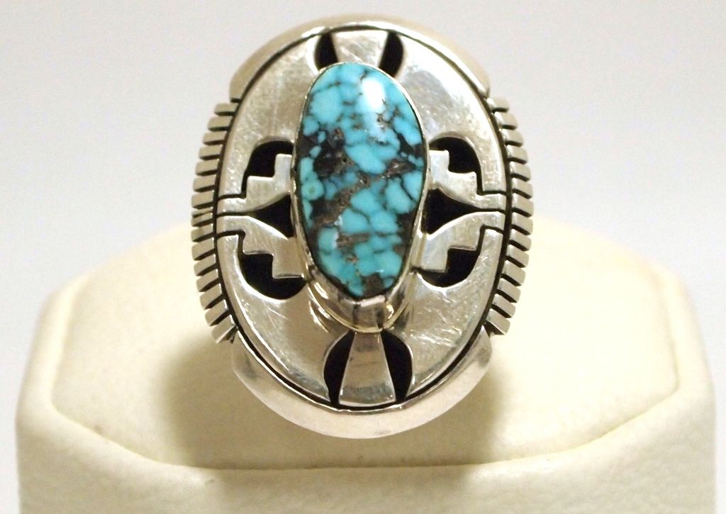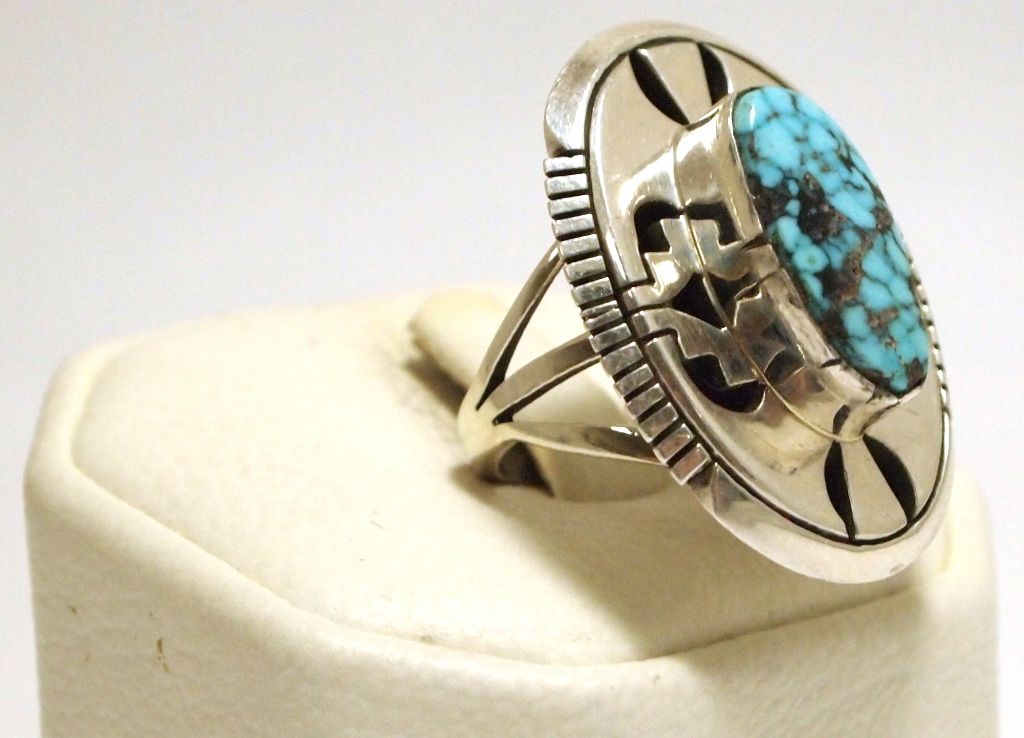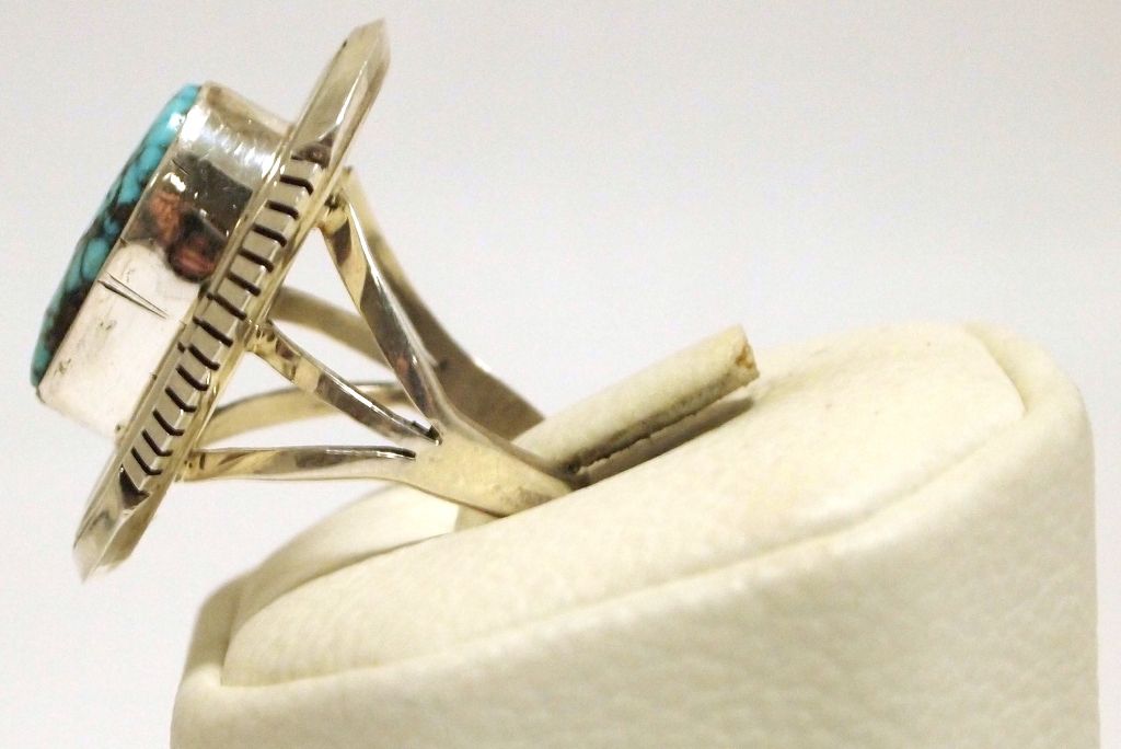 Navajo Spider Web Kingman Turquoise Sterling Silver Women's Ring - Eugene Belone