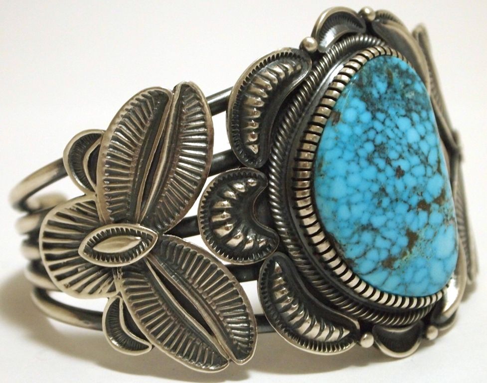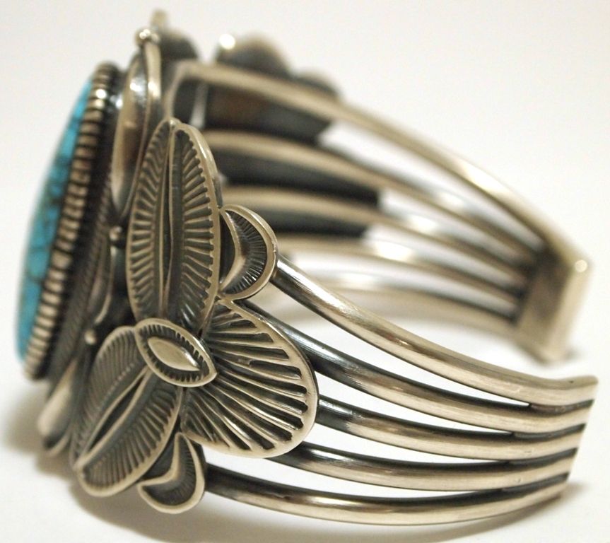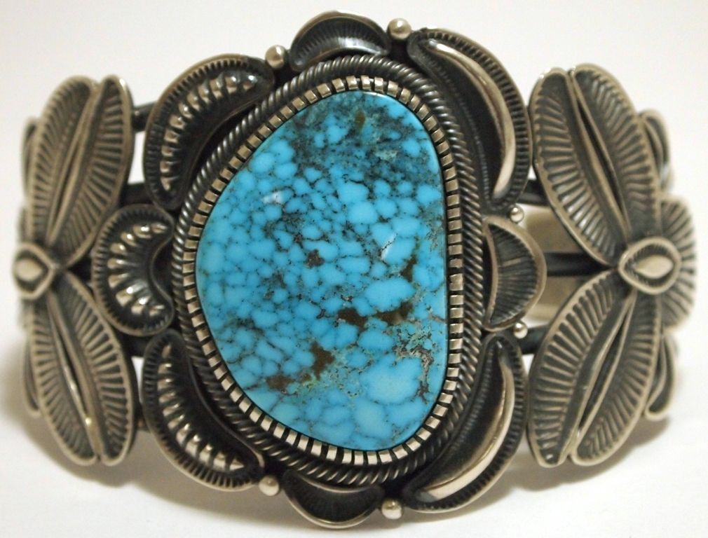 Navajo Spider Web Kingman Turuqoise Sterling Silver Cuff Bracelet - Kirk Smith