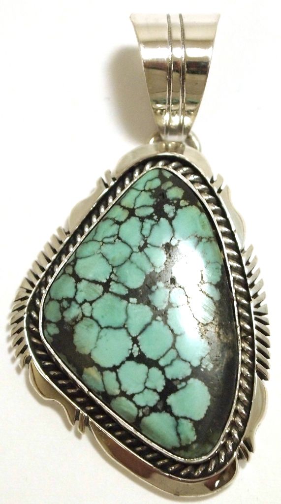 Navajo Spider Web Turquoise Sterling Silver Pendant - Eugene Belone