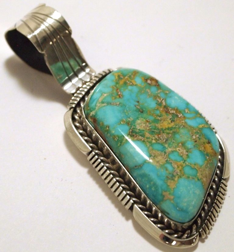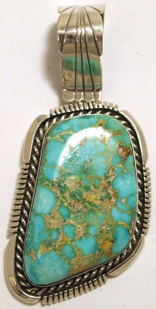 Navajo Spider Web Turquoise Sterling Silver Pendant - Eugene Belone