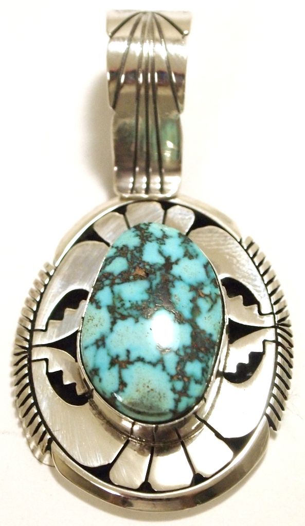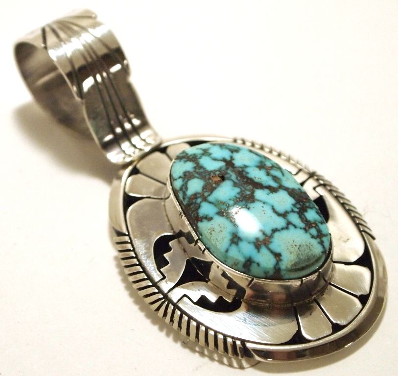 Navajo Spider Web Turquoise Sterling Silver Pendant - Eugene Belone