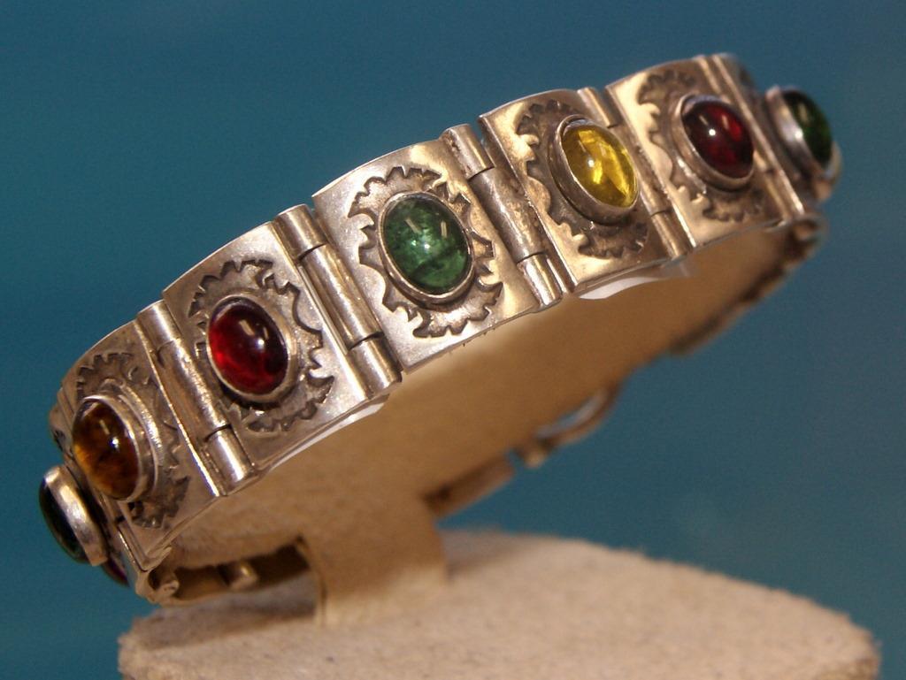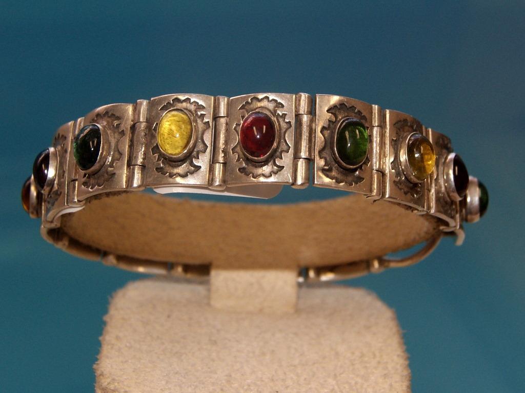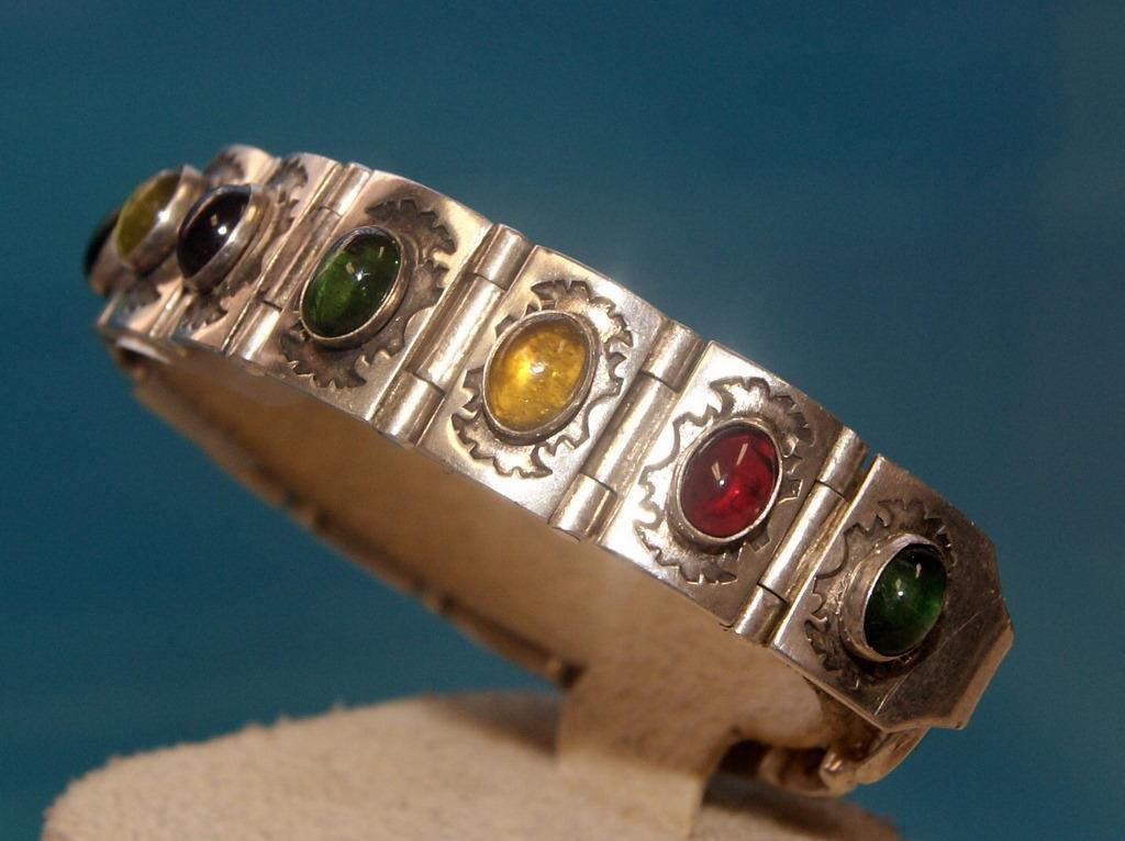 Navajo Sterling 14 Panel Gemstone Bracelet