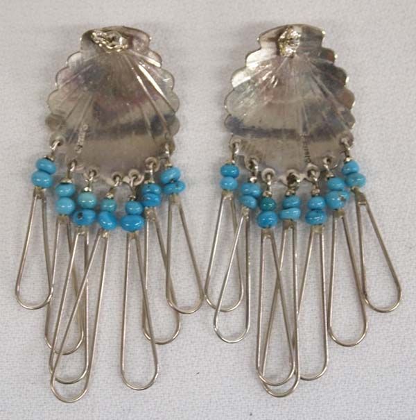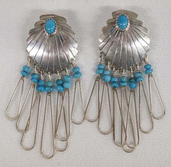 Navajo Sterling Silver Bisbee Blue Turquoise Earrings, measure 2.5''L x 1''W, 11g in total wt.
