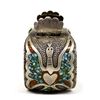 Native American Navajo Sterling Chip Inlay Turquoise & Coral Peyote Bird Watch Bracelet by Corbet Joe, inside measures 6.5'' x 1.5'', hallmarked, 100.02gtw