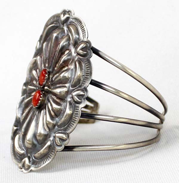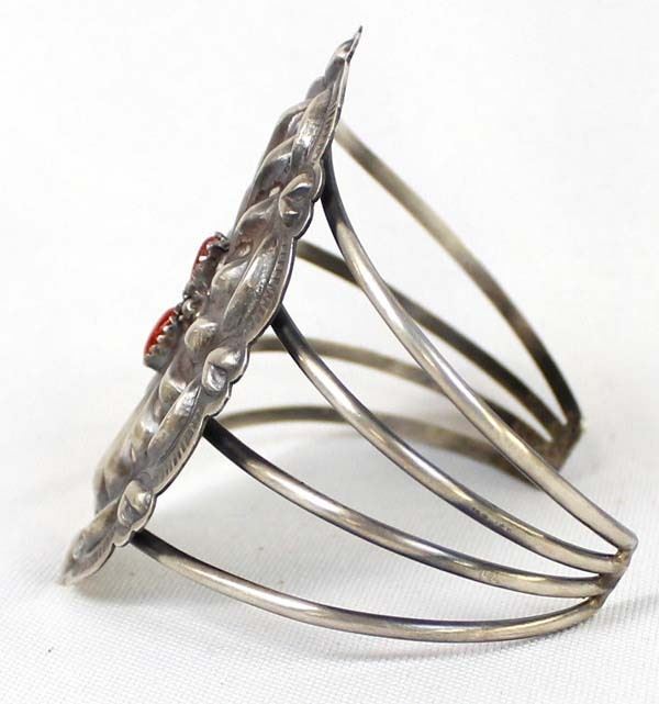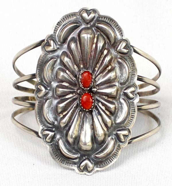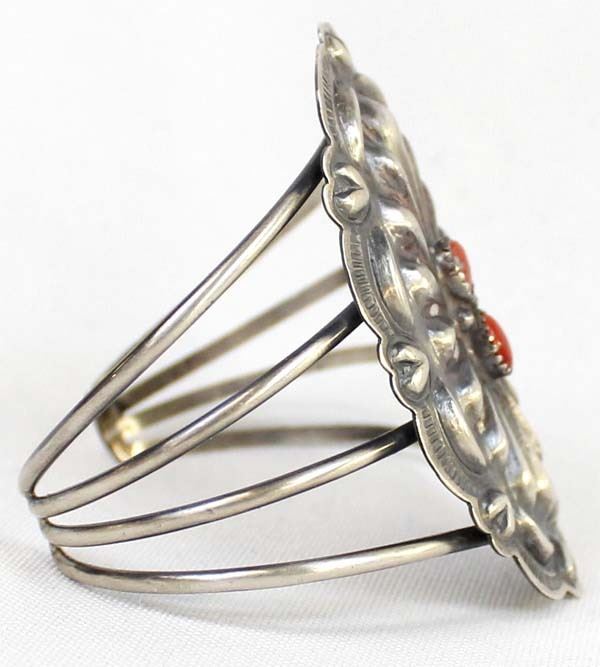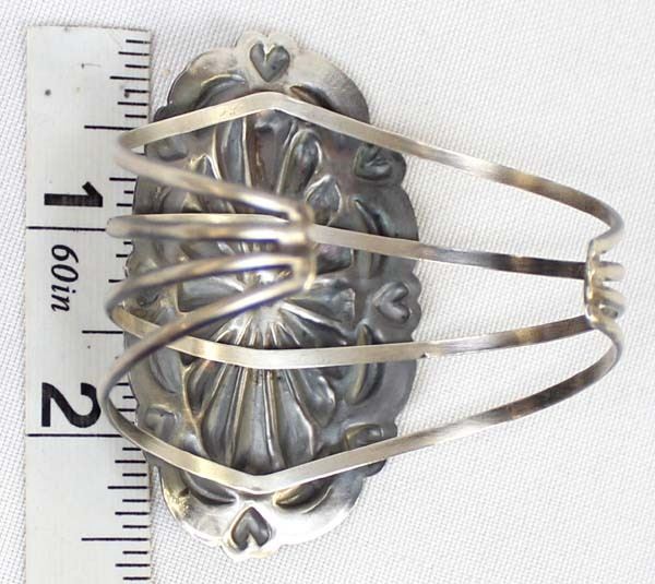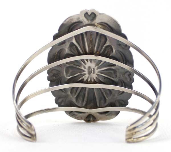 Native American Navajo Sterling Concho Bracelet by Tim Yazzie, inside measures 6'' which includes the opening x 2.75'', hallmarked and stamped sterling, slight damage to one of the bezels