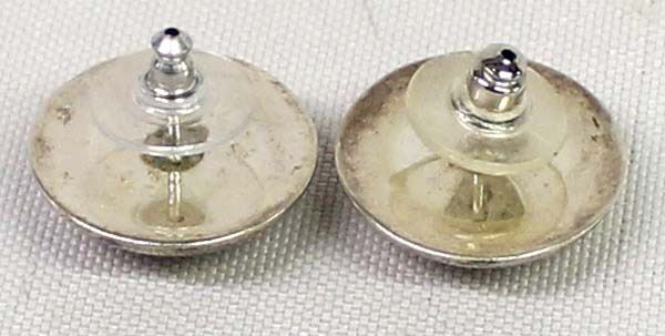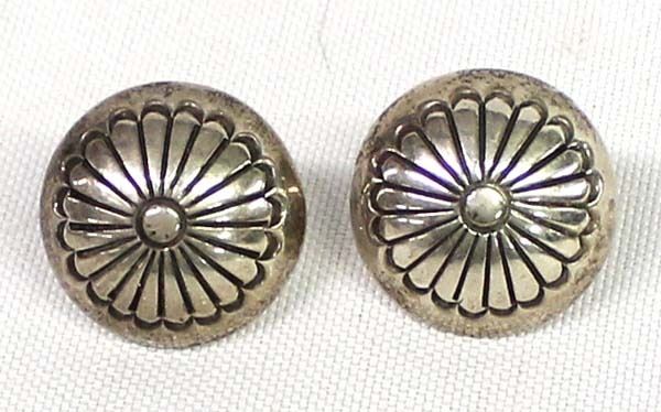 Native American Navajo Sterling Silver Concho Earrings, hand stamped details, measure 1''D