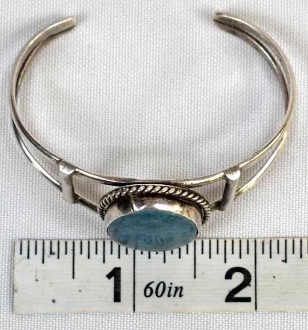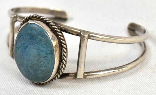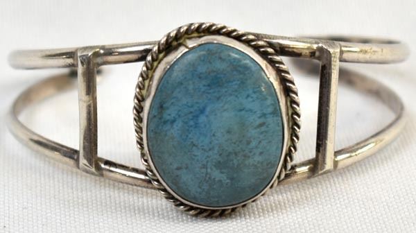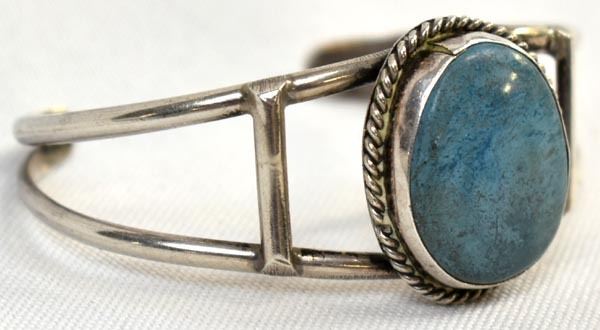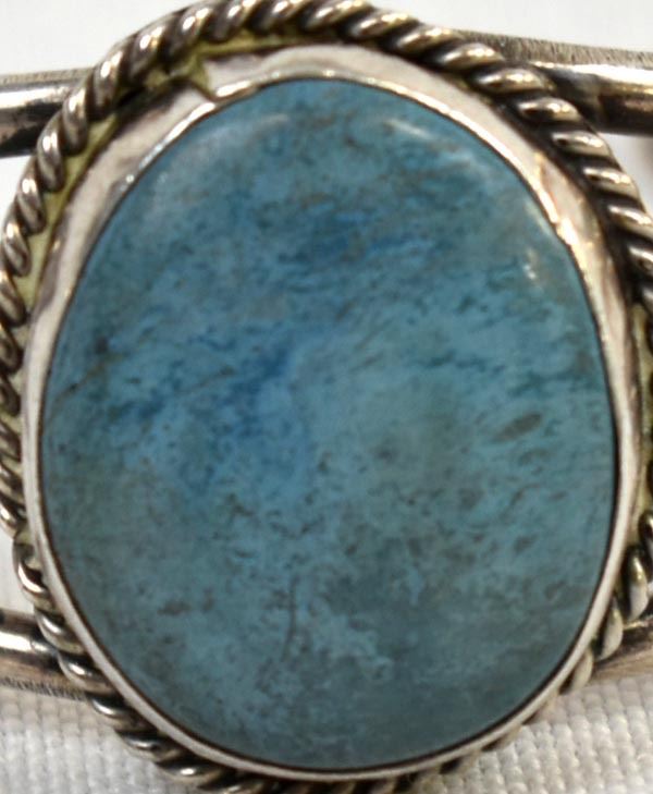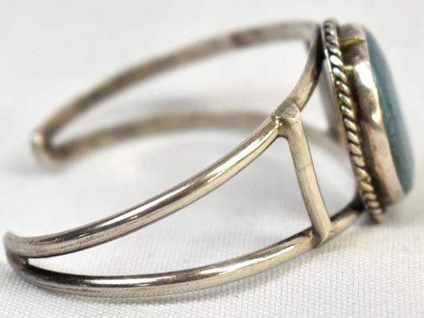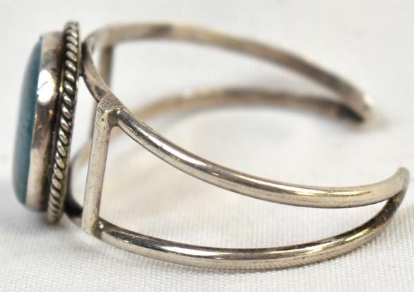 Native American Navajo Sterling Denim Turquoise Cuff Bracelet, inside measures 6.5'' X 1''w