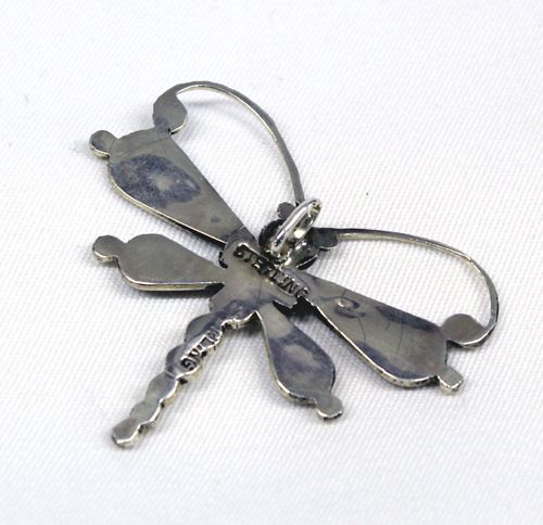 Navajo Dragonfly Pendant by Clifford Smith. Beautiful craftsmanship in this sterling dragonfly pendant by Clifford Smith. It measures2'' x 2 1/4''.