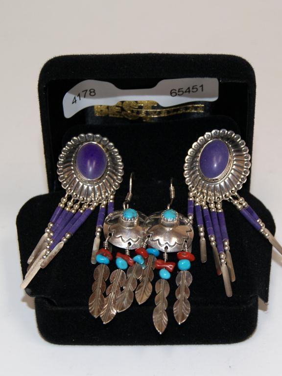 Navajo Sterling Earrings Turquoise, Coral, Shell