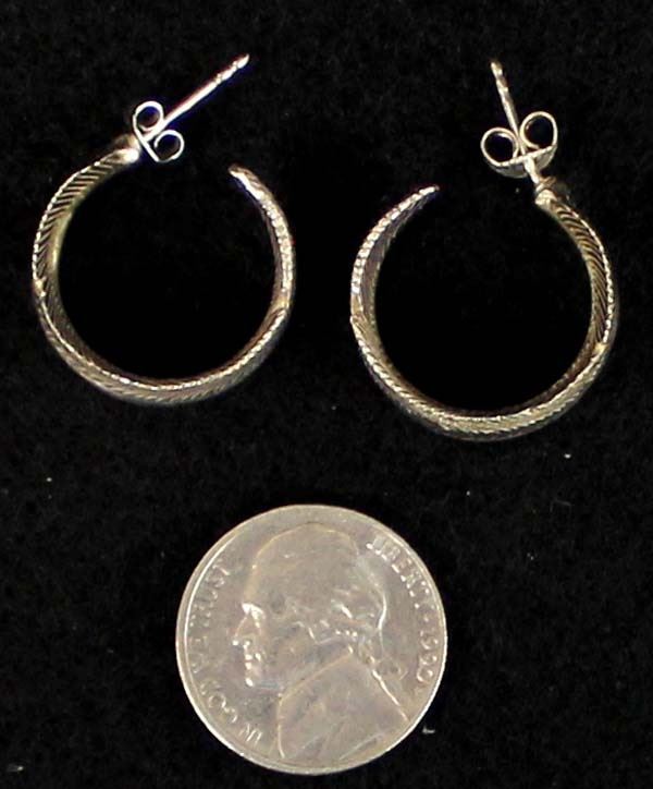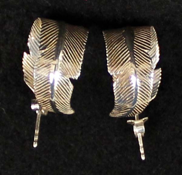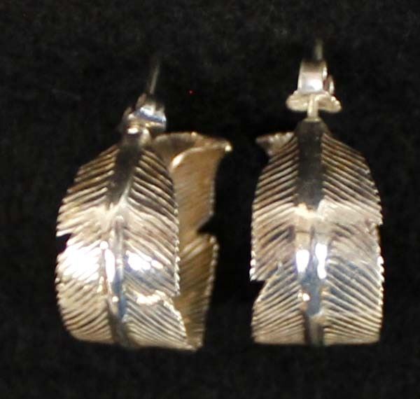 Native American Navajo Sterling Feather Hoop Earrings, measure .75'' x .75''