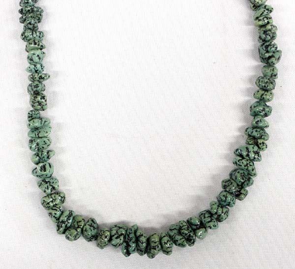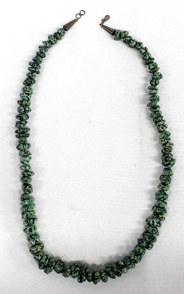 Vintage Native American Navajo Sterling & Green Turquoise Nugget Necklace, measures 20''L end to end, sterling cones and clasp
