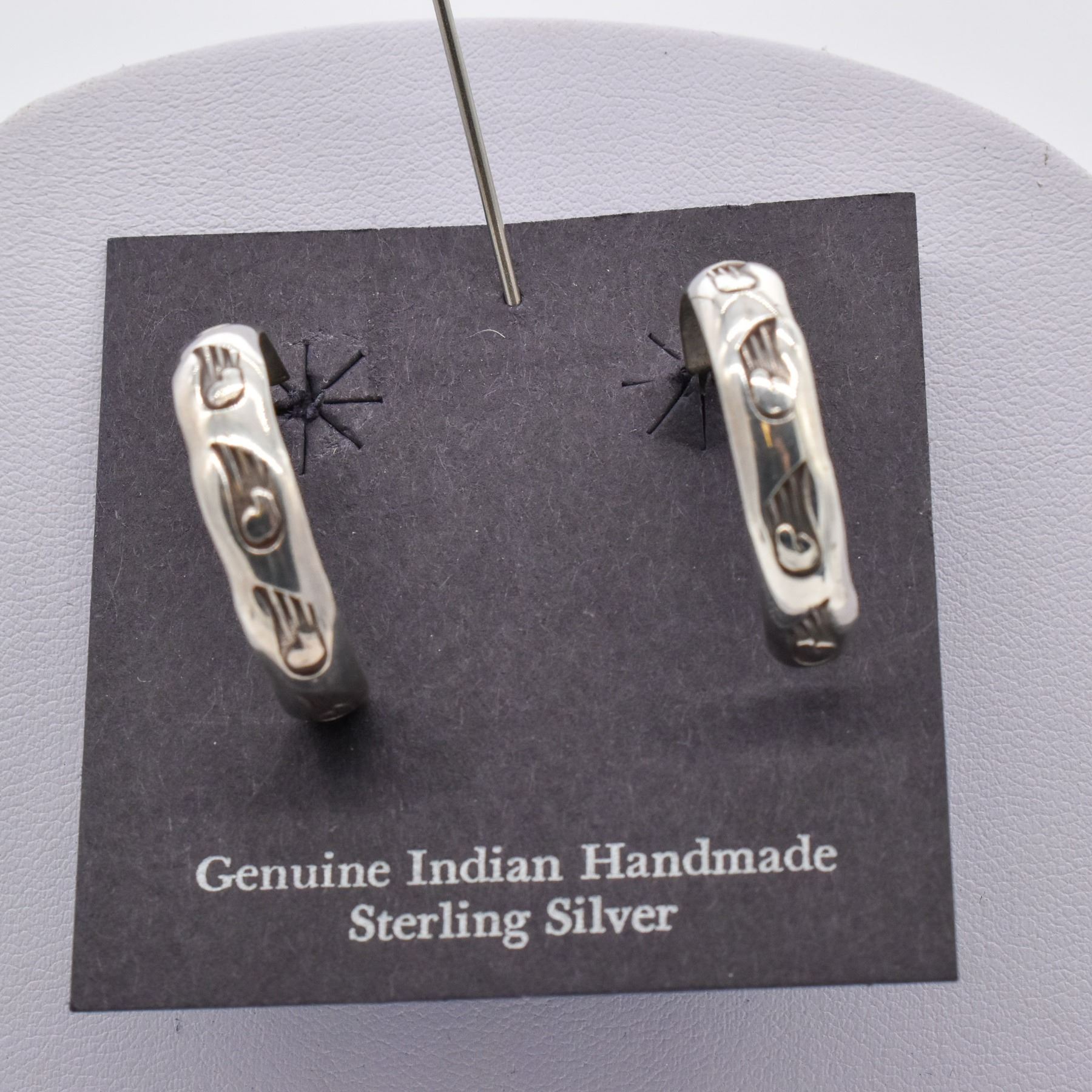 Native American Navajo Sterling Hoop Earrings, measure 1'' and are stamped sterling