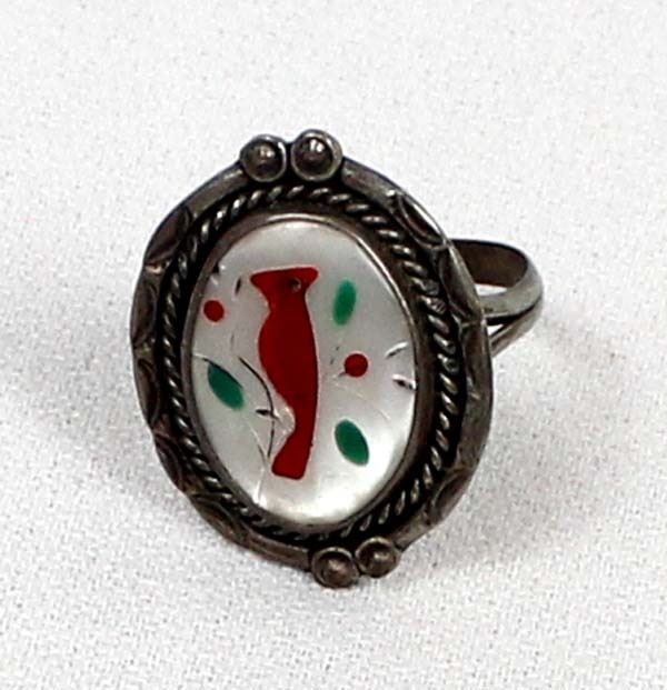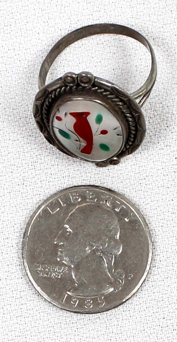 Navajo Sterling Inlay Cardinal Ring, Size 12