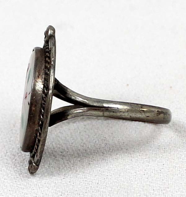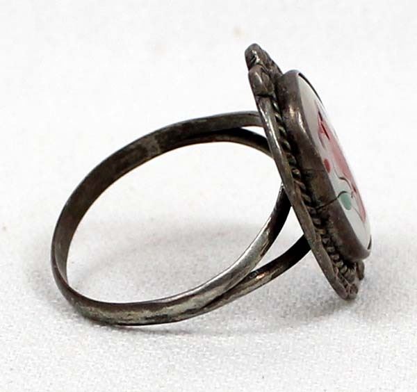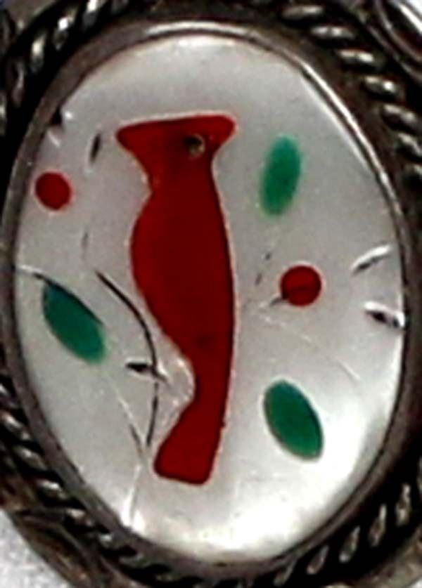 Native American Navajo Sterling Inlay Cardinal Ring, Size 12, measures 1''L x .75''W