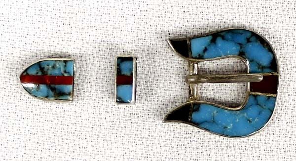 Native American Navajo Sterling Inlay Turquoise, Coral, Jet Child's Ranger Belt Buckle, measures .75'' x .75'', absolutely adorable